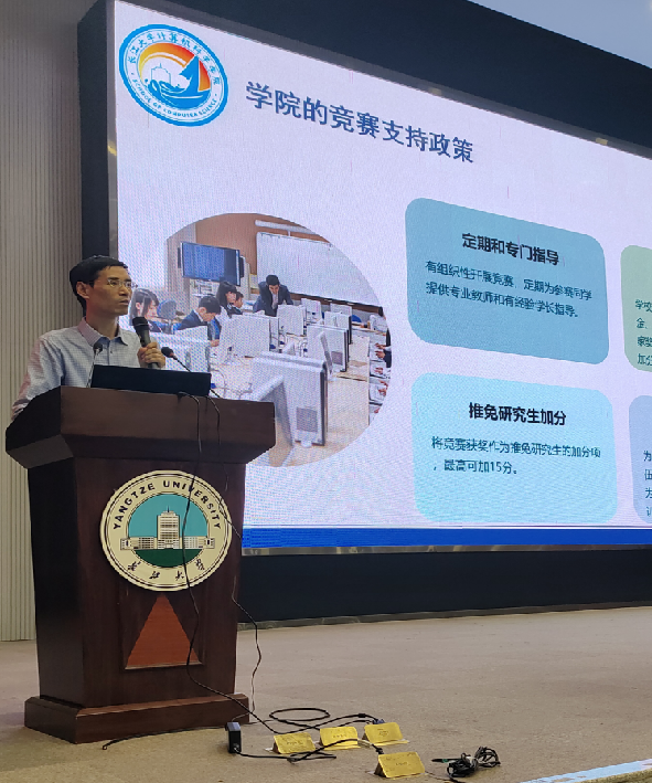 会议伊始,学院副院长陈中举围绕学科竞赛政策展开专题解读,从学科竞赛分类、报名渠道筛选到奖励机制细则,逐一进行清晰说明,鼓励新生以竞赛为契机,锤炼专业技能、提升综合素养。