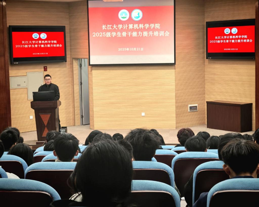 在农科大楼报告厅1056召开2025 级学生骨干能力提升培训会。会议由学院辅导员主持,2025级辅导员余珺瑞、2024级辅导员蒋代运及2025级全体班委共同参与。