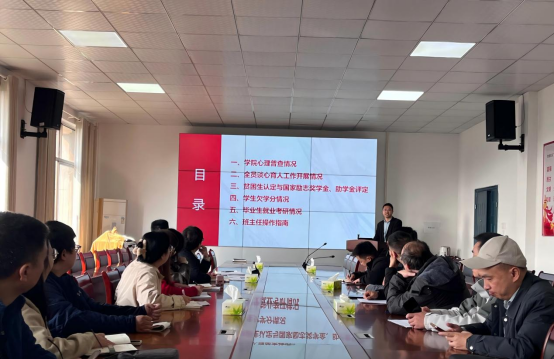 组织召开班主任工作会议。学院党委副书记艾林主持会议并作专题部署,全体班主任参会。会议围绕学生心理健康、资助评定、学业帮扶及就业考研等关键工作展开详细部署,为后续学生工作高质量推进划定清晰路径。