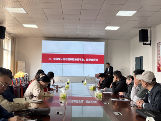 会上,艾书记首先传达了上级教育主管部门关于资助工作的最新政策要求,详细解读了《普通高等学校家庭经济困难学生认定办法》《国家励志奖学金管理暂行办法》《国家助学金管理暂行办法》等核心文件。针对贫困生认定的申请条件、审核流程、公示要求等关键环节,明确了“本人申请、班级评议、学院复核、全校公示” 的工作机制,强调要坚持 “公开、公平、公正、透明” 原则,确保认定结果真实准确,让每一位真正困难的学生都能得到帮扶。