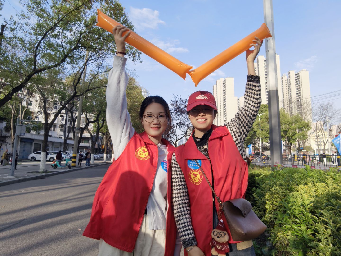 在数小时的志愿服务中,全体志愿者始终保持着挺拔的站姿与高昂的热情。大家不仅是赛道旁的“啦啦队”,更是现场秩序的“维护者”。志愿者们主动配合社区与赛事工作人员,积极引导群众文明观赛,保障了赛事路段的井然有序。这群专注而坚定的青年,赢得了参赛选手、现场观众及工作人员的高度赞誉。