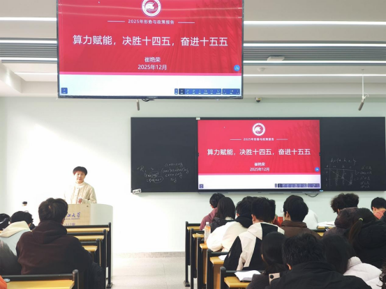 课程伊始,崔院长阐述我国在“十四五”期间的发展成就:经济总量跃升、新质生产力壮大、双循环格局稳步构建,让学子全面认知国家发展。在“读懂时代坐标”板块,她强调,政策加码下算力成国家竞争焦点,数字经济催生智能算力爆发式增长,而技术瓶颈亟待青年一代攻坚。最后,崔院长对同学们提出三点期望:一是锚定国家战略方向,做“有目标”的科研,将个人研究与国家需求紧密结合;二是锤炼复合能力,做“多面手”的人才,主动涉猎跨学科知识,适应算力产业发展需求;三是保持开放心态,做“善合作”的创新者,在交流协作中攻克技术难题。