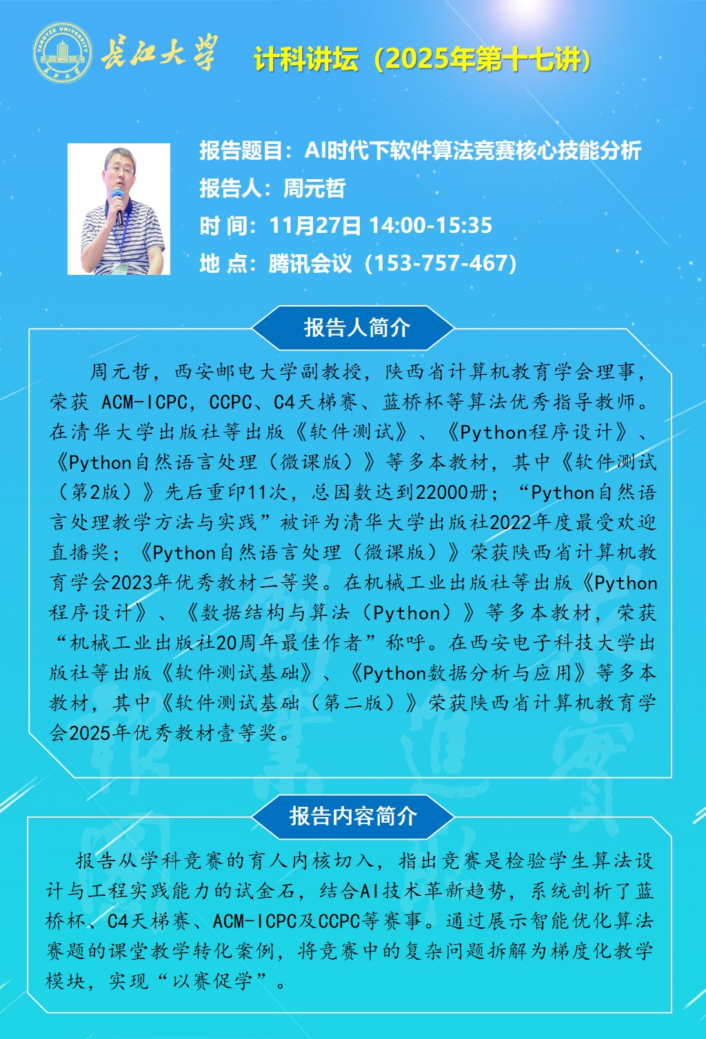 计科讲坛(2025年第十七讲):AI时代下软件算法竞赛核心技能分析